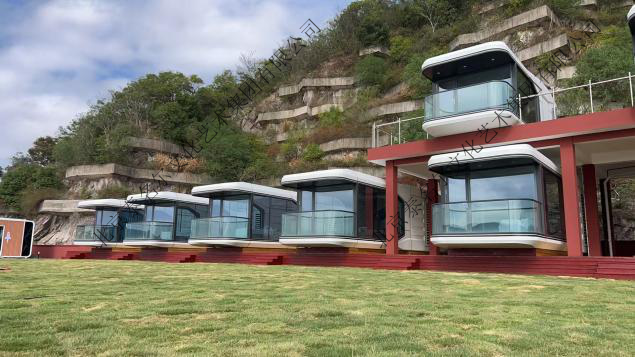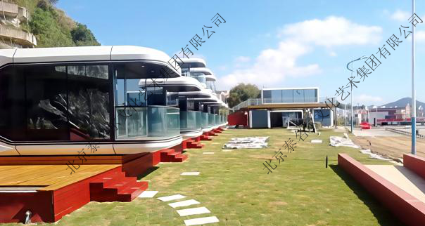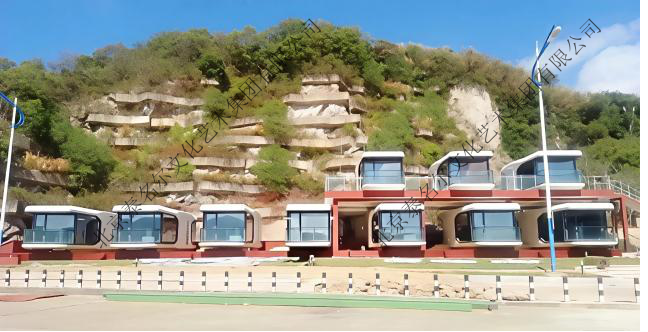 结合海岛自然地貌,将未来感设计与海岛生态融合,打破传统海岛民宿同质化局限。通过模块化太空舱的科技感与蚂蚁岛红色文化、海洋生态的深度绑定,打造集红色研学、海岛度假、生态体验于一体的新型旅居目的地。