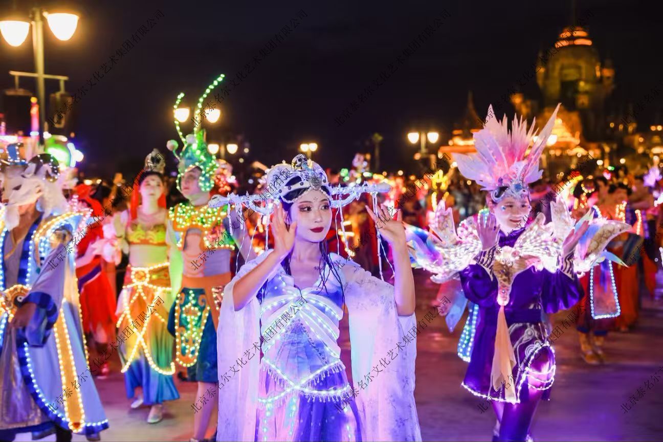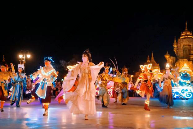 围绕《西游记》经典叙事,深度融合原创服饰、化妆、道具设计与演艺人员统筹管理。通过花车巡游、闭园秀等场景化演绎,成功构建沉浸式西游神话体验,彰显中国人自己的主题公园的文化内核。