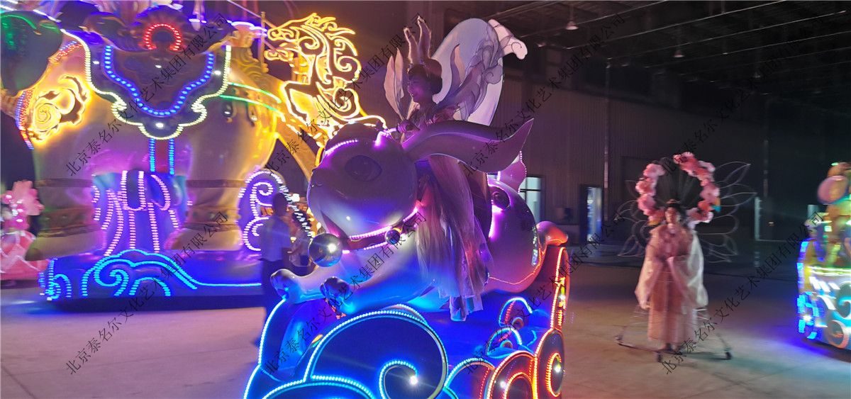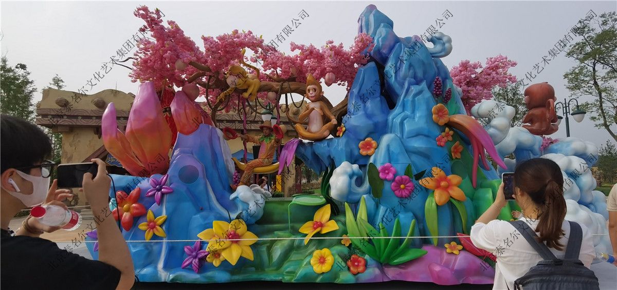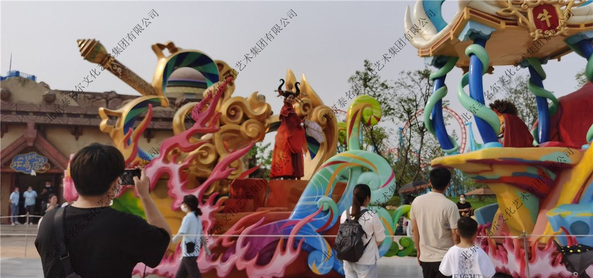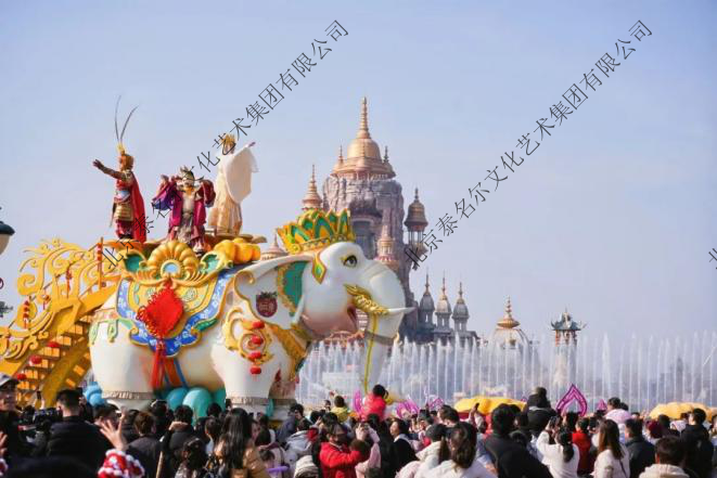 深度解构《西游记》经典场景与核心角色,精选“大闹天宫”“三打白骨精”“西天取经”等标志性情节,以分段式花车结构构建完整叙事动线,让游客在巡游中沉浸式走入西游故事,实现文化IP与游乐体验的深度绑定。