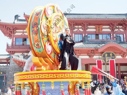 以《狄仁杰》系列、《太极》等经典电影IP为灵感内核,将影片中高辨识度视觉符号具象为可动态演绎的立体巡游装置。设计深度融合电影叙事与现代科技,成功打造可移动的电影场景,让游客在沉浸式娱乐中触摸文化温度、感受科技魅力。