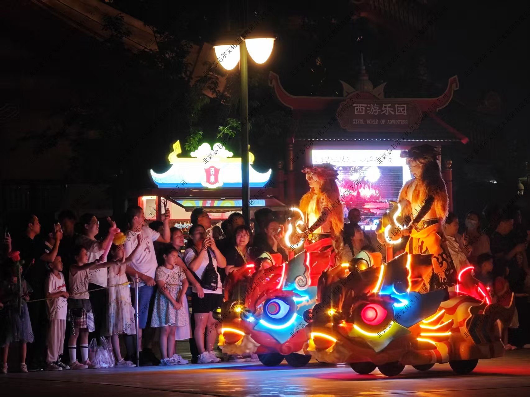 围绕《西游记》经典叙事,深度融合原创服饰、化妆、道具设计与演艺人员统筹管理。通过花车巡游、闭园秀等场景化演绎,成功构建沉浸式西游神话体验,彰显中国人自己的主题公园的文化内核。