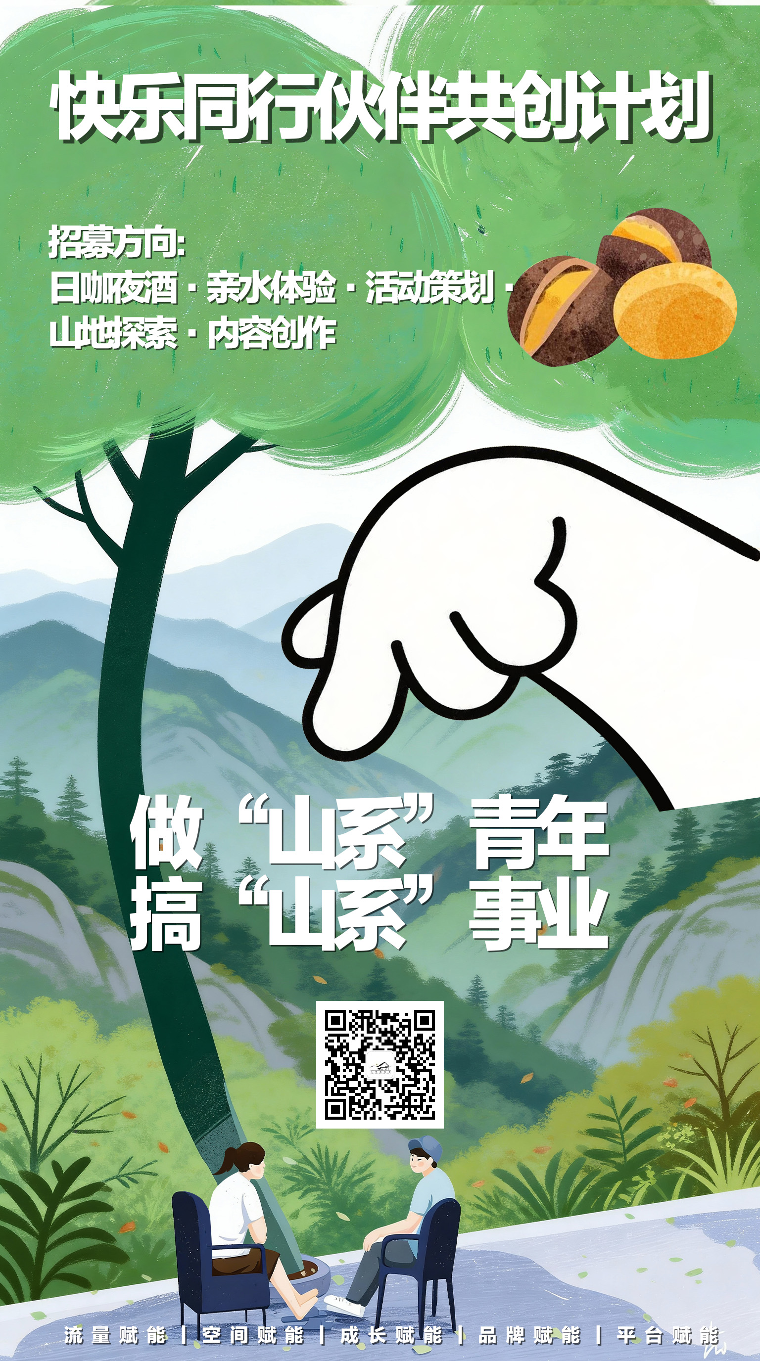 如果你厌倦了城市的重复,渴望将热爱变成事业,将山野变成生活主场,做“山系”青年,搞“山系”事业。那么,这份“快乐同行伙伴共创计划”,就是我们为你备好的山野邀请函。